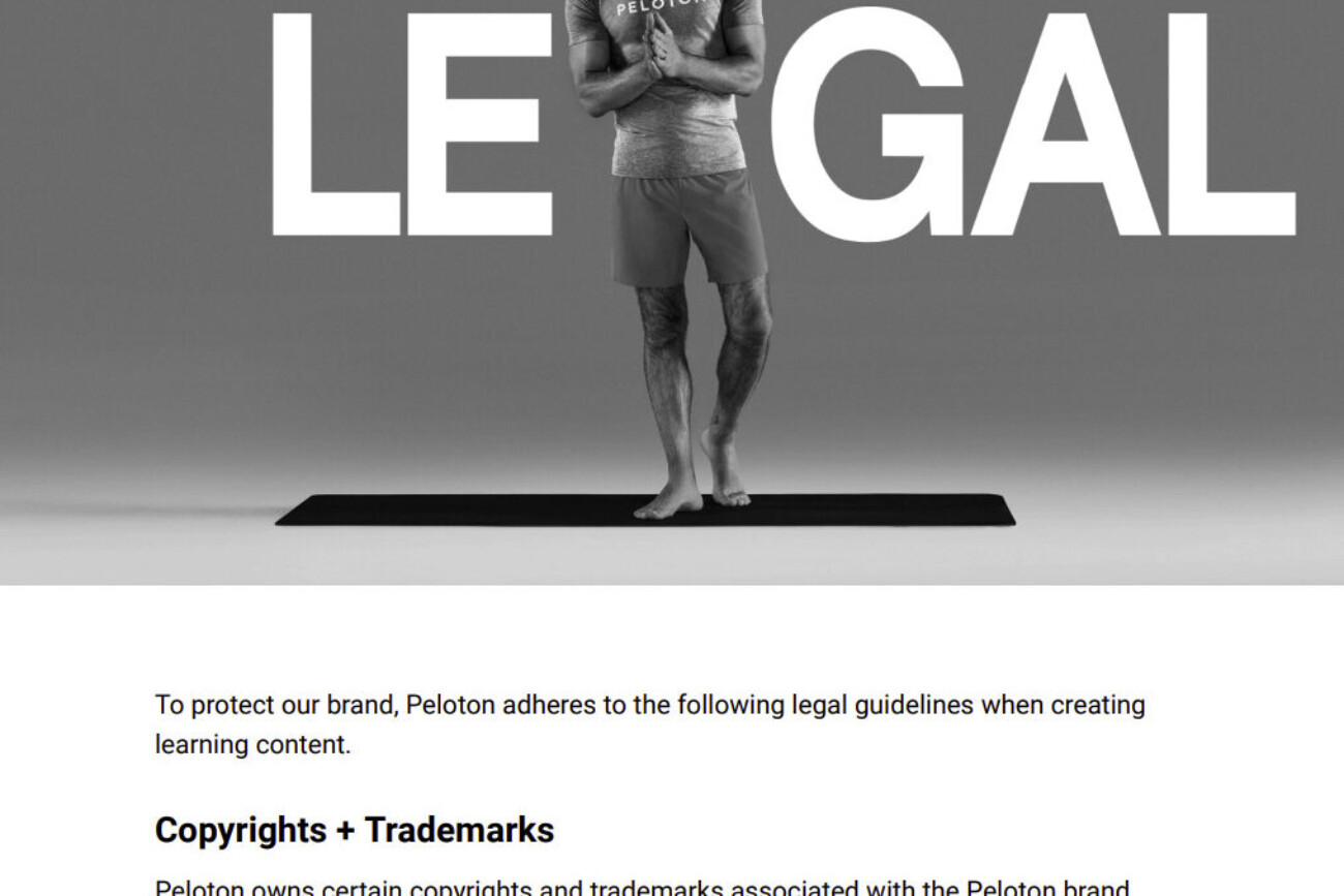 The idea was to update our guidelines with up-to-date brand and UX/LX standards in a way that was easy to navigate and access from any device across Peloton to elevate the quality and effectiveness of our e-learning content. Integrating Articulate Rise design principles with Learning & Development guidelines offered a structured and secure approach to creating engaging, instructional-sound online courses.