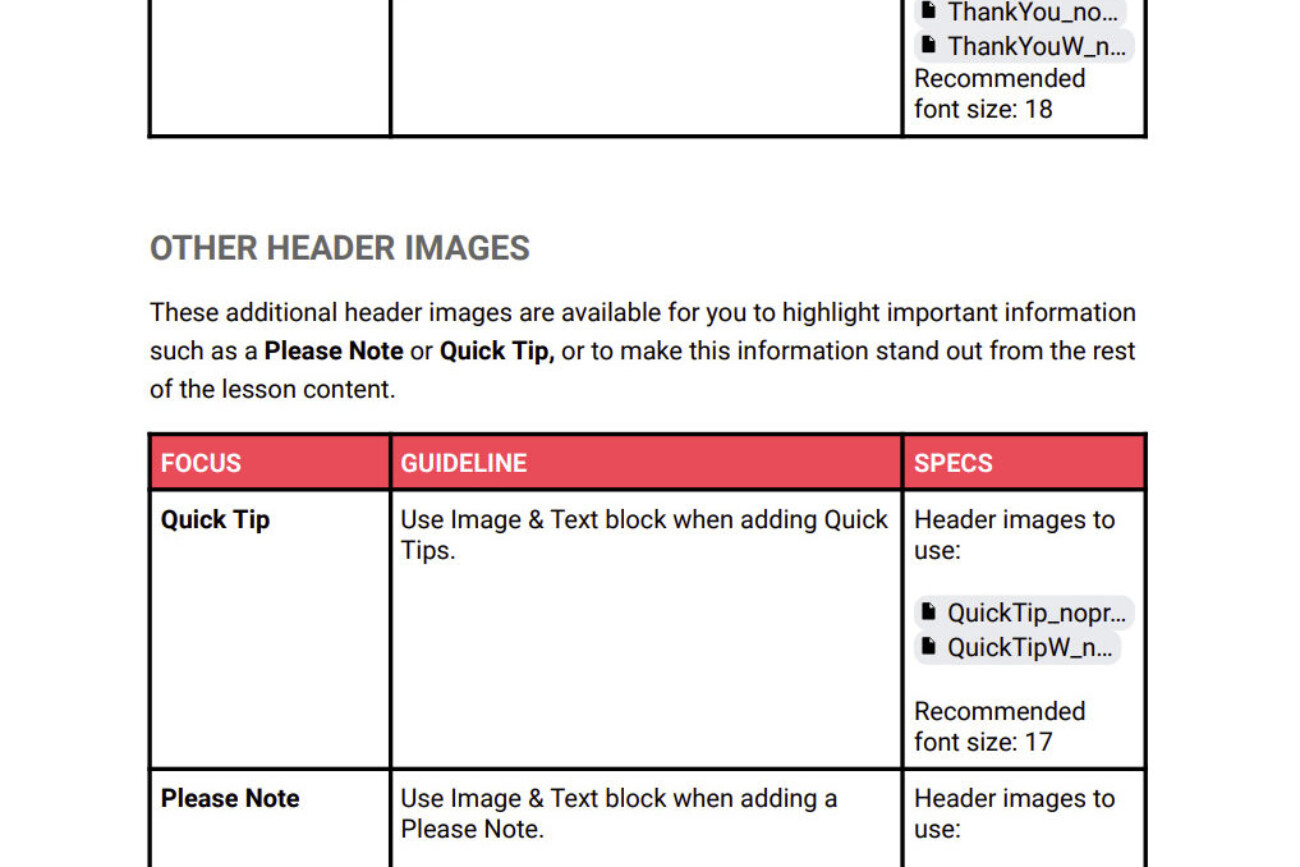 To address the growing demand for high-quality, impactful Learning and development (L&D) content, a unified, updated, extensive guide that outlined effective content guidelines and integrated best practices to standardize the look and feel of our lessons was critical. This guide is a comprehensive resource that empowers fellow team members to produce high-quality content that aligns with our overall look and feel.