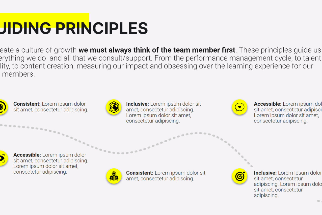 The project aimed to refresh the presentation deck for a facilitation workshop, ensuring its visual alignment with Peloton’s updated brand identity and colors. The goal was to enhance the overall design and presentation of the content, making it more engaging and digestible for participants. By incorporating high-quality visuals and a polished layout, the objective was to create a deck that conveyed information effectively and captured Peloton’s dynamic and energetic spirit.