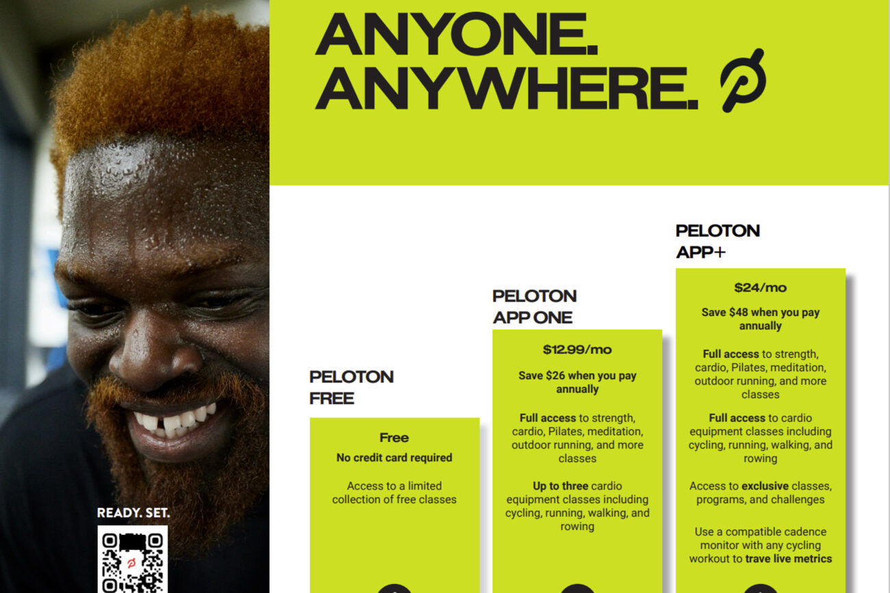 Adobe InDesign was employed to craft this asset, incorporating the Peloton brand’s refreshed color palette. The “anyone. anywhere” brand statement took prominence on the front, conveying a clear brand identity. Additionally, a stair-stepping visual was strategically employed to represent the three app tiers, accompanied by detailed information on pricing and features. This visual design approach enhances the instructional aspect, making complex information more accessible and visually engaging for the audience.